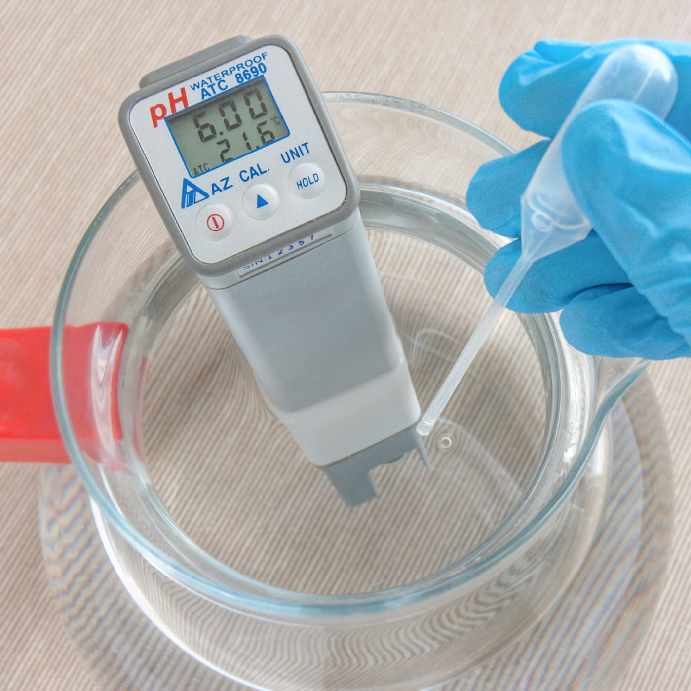 Поддержание нормального кислотно-щелочного баланса воды в СПА-ванне обеспечивает качественное состояние воды, сбалансированность и безопасность ее характеристик. Показатель рН влияет на эффективность химических средств и, как следствие, на размножение микроорганизмов, внешний вид воды, ее пригодность к использованию. Наиболее благоприятным считается рН 7,2-7,6, при котором обеспечивается максимальная эффективность реагентов и отсутствуют неприятные ощущения на коже. Для поддержания нормативных показателей рН применяют препараты pH+ и pH- в виде гранул, порошков или жидкостей.