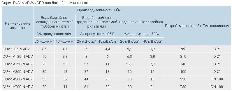 В соответствии с российскими и международными стандартами для обеззараживания вод бассейнов и аквапарков применяется доза 25–40 мДж/см2.