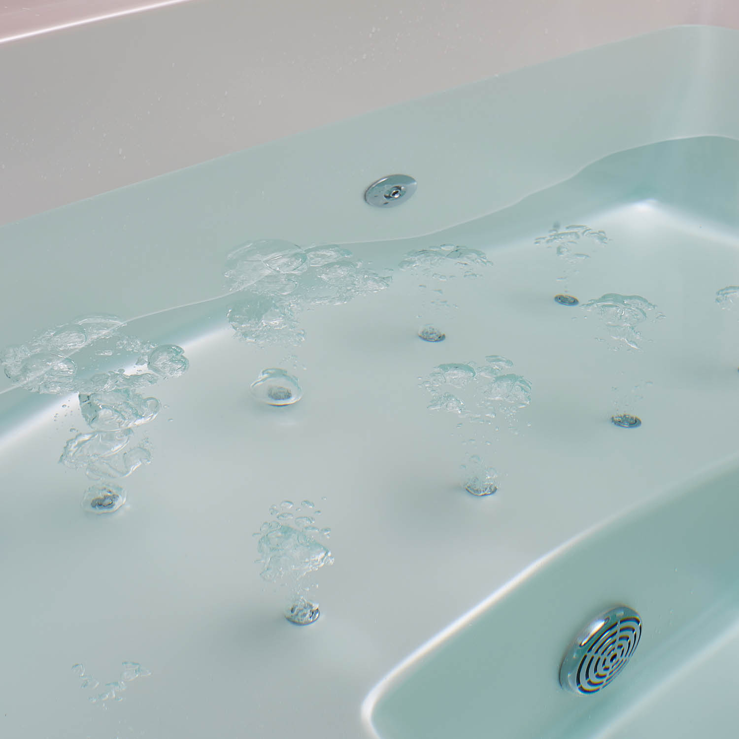 Струи воздуха и воды улучшают качество массажа, способствуют хорошему кровообращению в организме, благодаря форсункам.