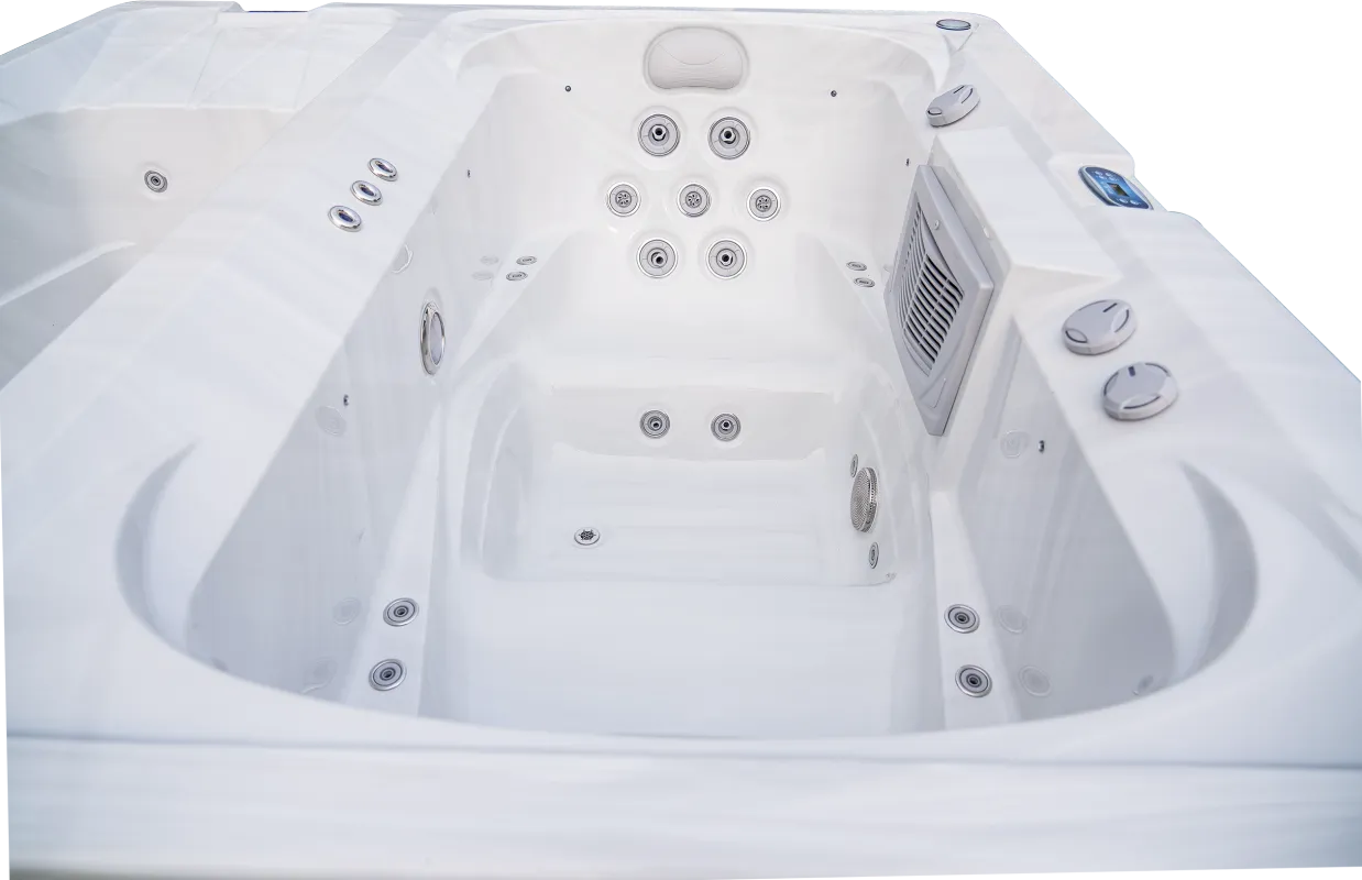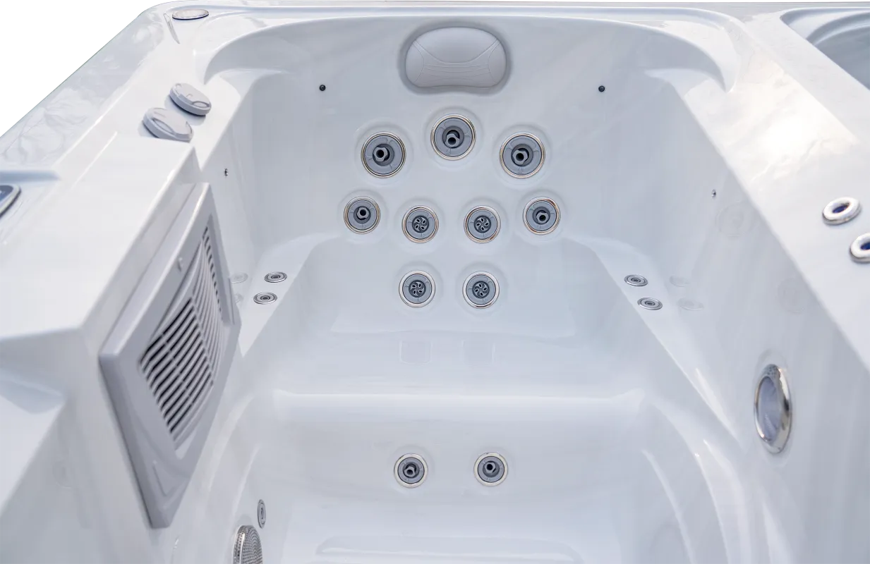 Бассейн достигает массажного эффекта с помощью мощных струй, которые пропускают воду и воздух. Теплые струи воды эффективно расслабляют мышцы и способствуют выработке естественных анальгетиков организма. Сила струи в 5-10 раз больше, чем у обычных джакузи. Многофункциональные массажные форсунки предназначены для различных частей тела, обеспечивая точное воздействие на нужные зоны.