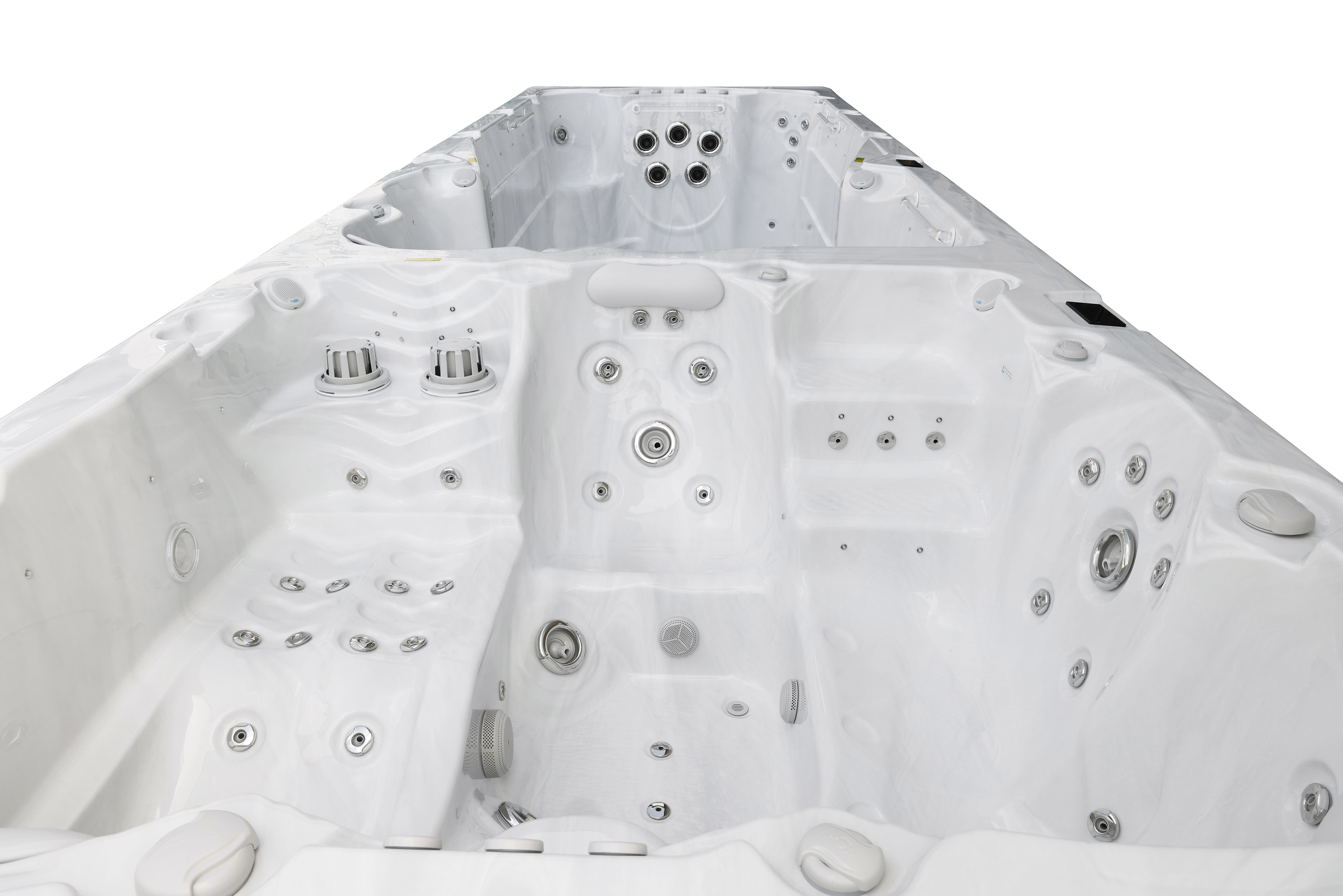 Это полностью готовое решение для тренировок и отдыха. Мощную систему гидромассажа, создающую невероятный комфорт в спа-зоне, обеспечивают 101 форсунка. Эффективный массаж и мощные водяные потоки создаются четырьмя производительными насосами: два насоса мощностью 2,2 кВт для спа-зоны, и два мощных насоса: 2,2 кВт и 2,9 кВт для плавательной зоны, что позволяет создать идеальное встречное течение для плавания.